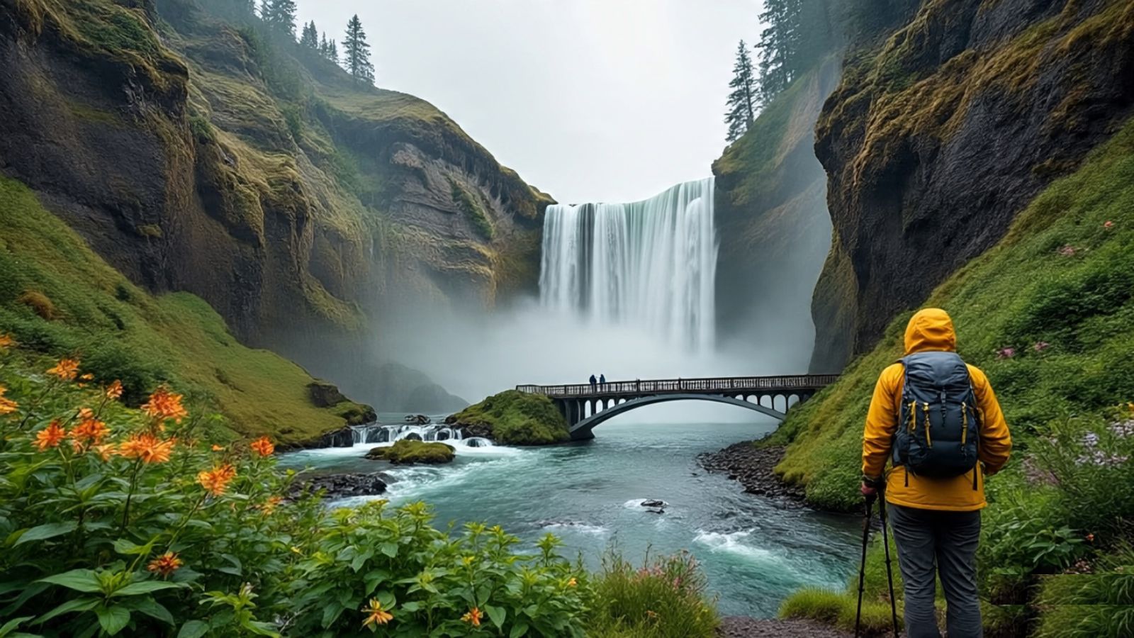 - Rain: Enhanced waterfall flow but slippery conditions